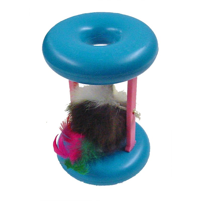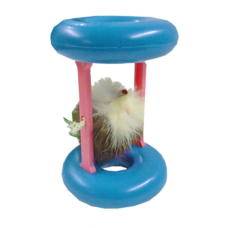 Keep your cat occupied and hunting for hours with this mouth cat wheels toy. This toy features a feathered mouse tied in-between two large outside wheels. As you cat pounces on the mouse, the wheels allows it to roll away to a new location, keeping the 'hunt' alive for your cat.