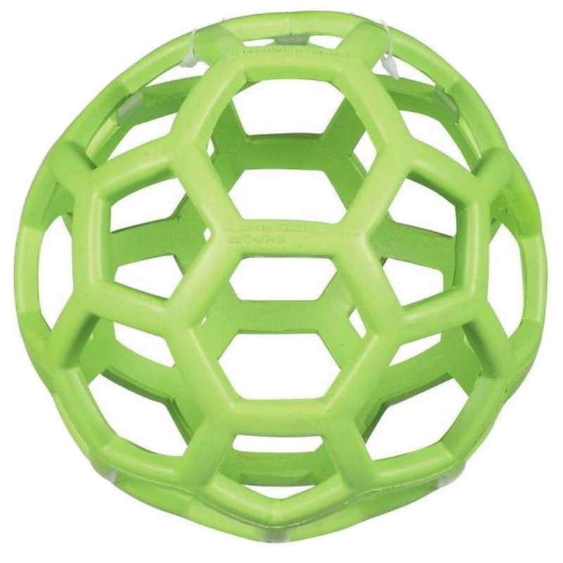 Looking for a different kind of ball for your favorite canine? This one is sure to fit the bill! Made from a high quality rubber this durable, chewy bouncing toy will last and last. The ingenious honeycomb design allows it to be squished and tugged and it will snap back into shape time after time. A chew toy, bounce toy, fetch toy, tug toy, and treat ball all rolled into one. Spread the holes apart and stuff a favorite toy or treat inside. Assorted colors.