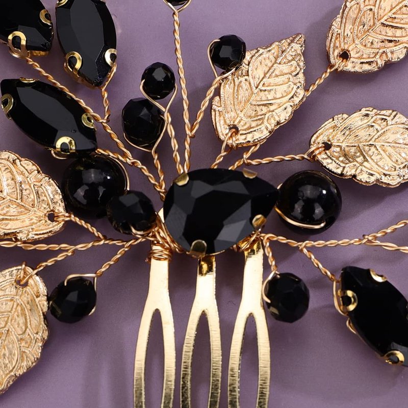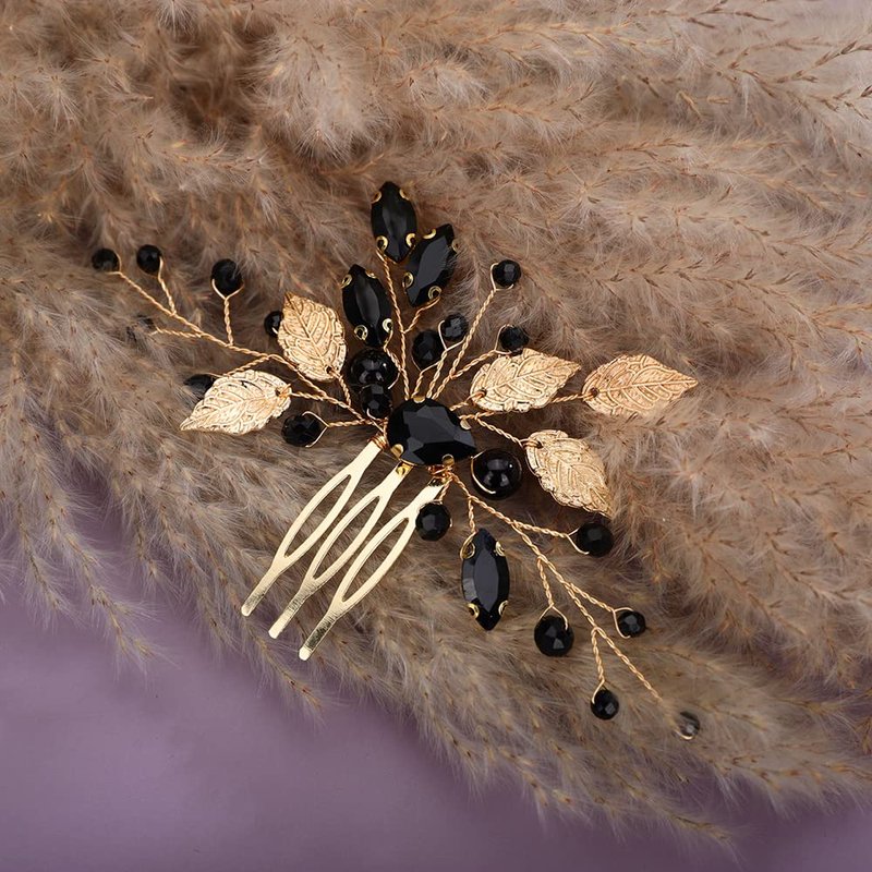 JWICOS Beaded Crystal Bridal Hair Comb with Hair Accessories for Brides and Bridesmaids (Gold Black)