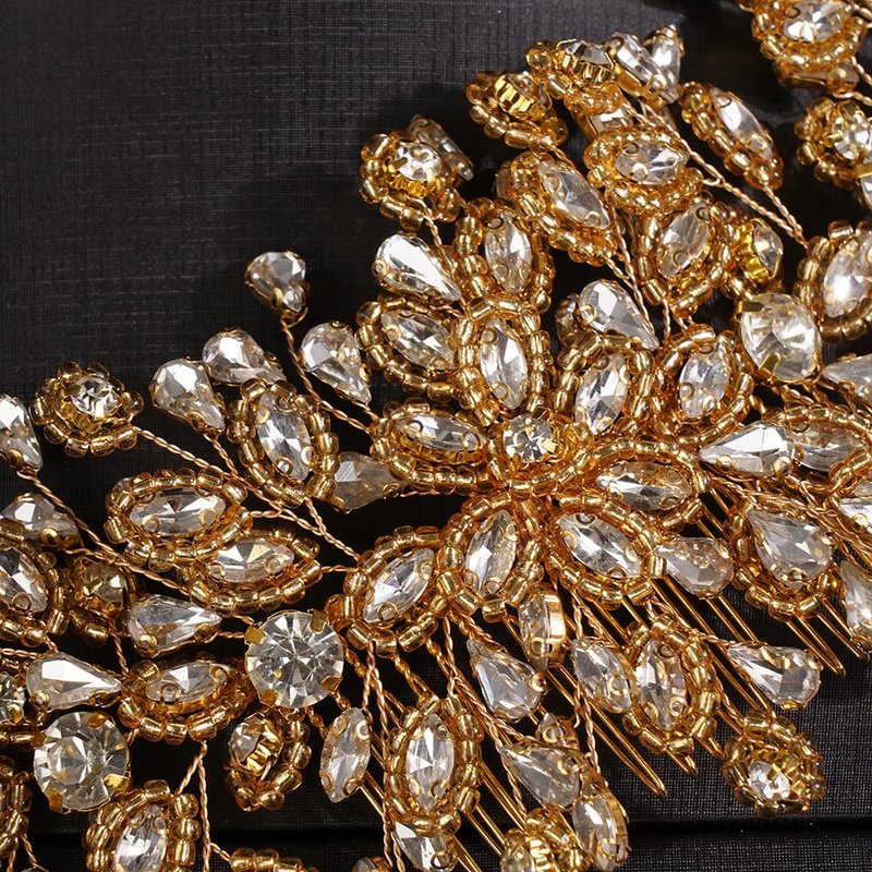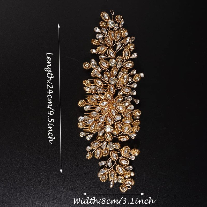 JWICOS Bride Wedding Hair Comb Silver Crystal Headpieces Bridal Hair Clip Side Comb Wedding Hair Accessories for Women and Girls (Gold)