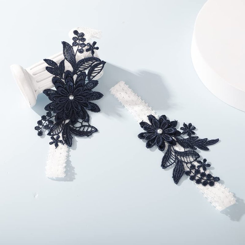 JWICOS Bride Wedding Lace Garters Stretch Flower Garter Set Bridal Garters Costume for Women and Girls (Navy Blue)
