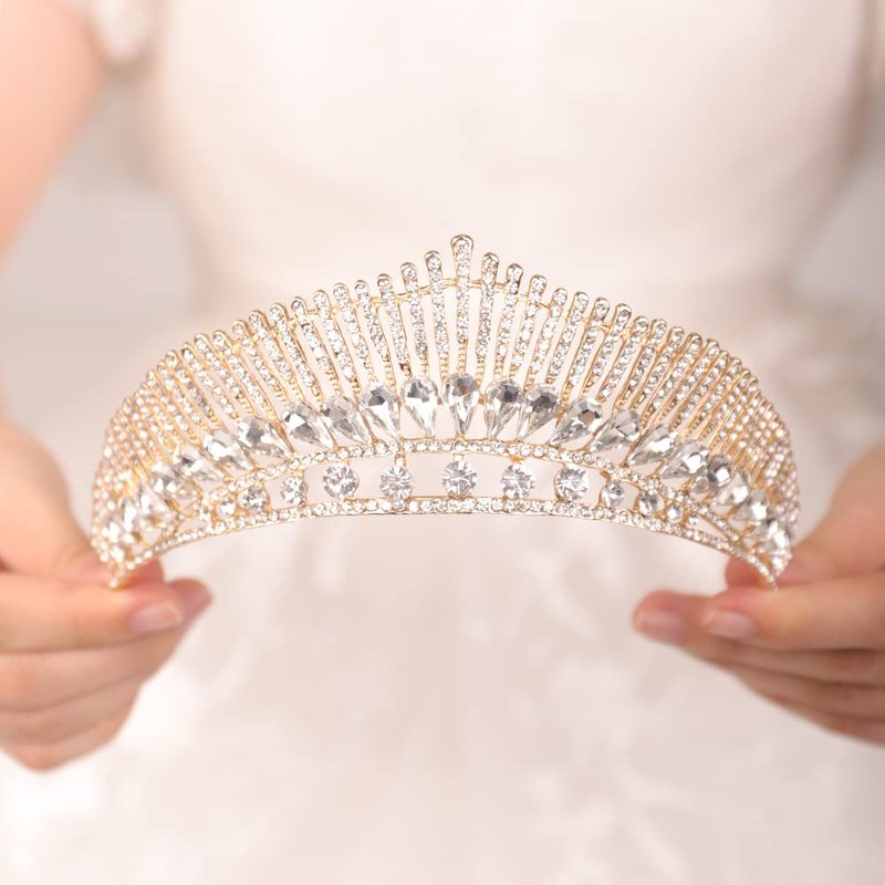 - Material: durable hard alloy, rhinestones and crystal. The alloy has a diamond appearance and a hard texture for practicality and aesthetics. The tiara crown is lightweight and there is no sense of weight on the head after wearing the crown.