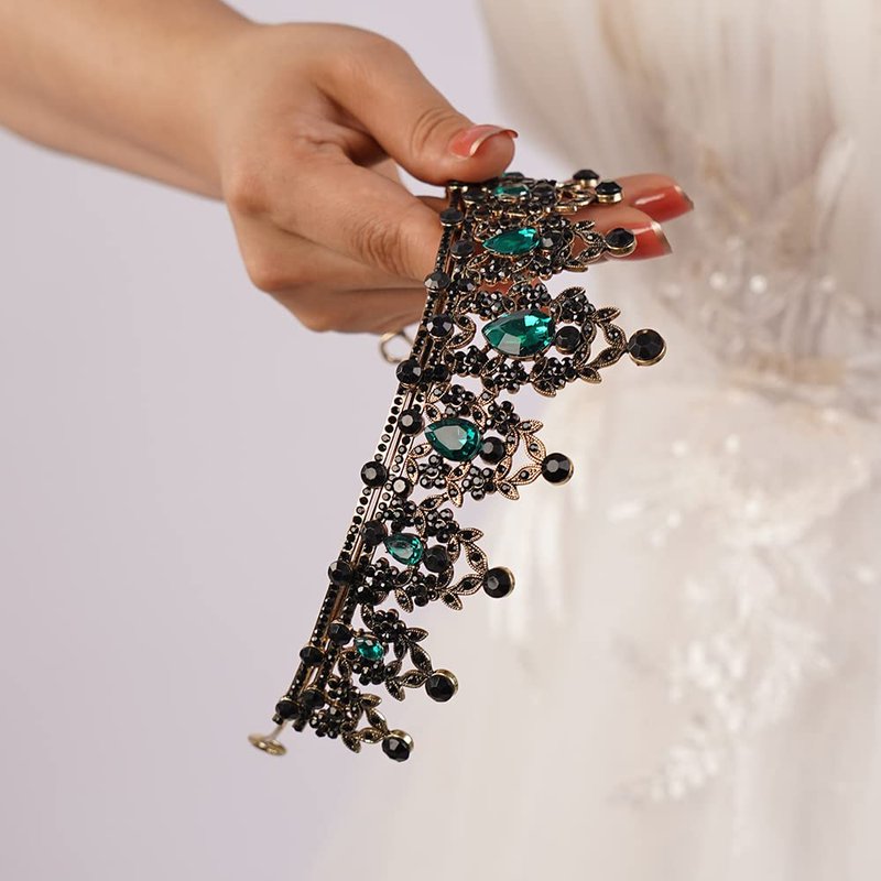 JWICOS Tiaras and Crowns for Women Gothic Crystal Queen Crown Black Baroque Vintage Tiara for Halloween Costume Birthday Party (Green Black)