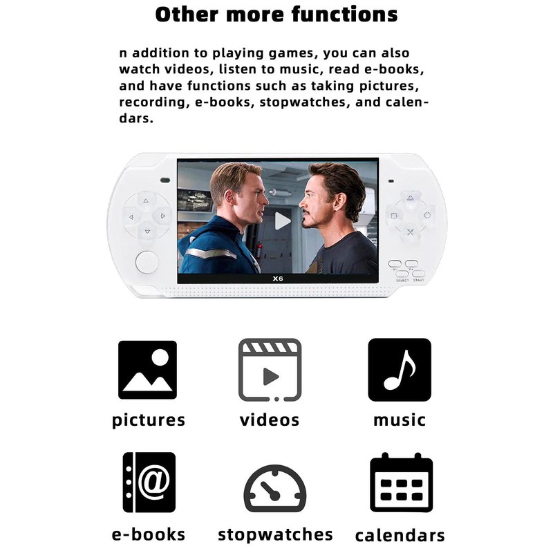 - ※More other entertainment functions※.It's not just a game console. When you don't want to play games, it can also watch movies, electronic music and e-books. It also has recording, e-book, stopwatch, calendar and other functions.
