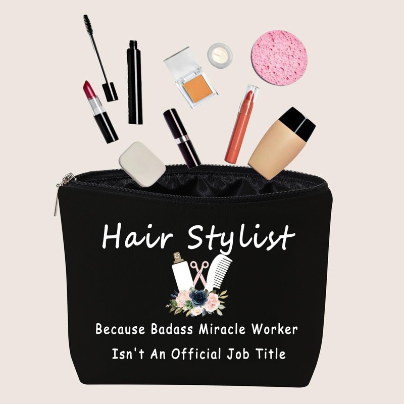 JXGZSO Hairdresser Gift Hair Stylist Gift Because Badass Miracle Worker Isn't An Official Job Title Hair Dryer Makeup Bag (hair stylist black)