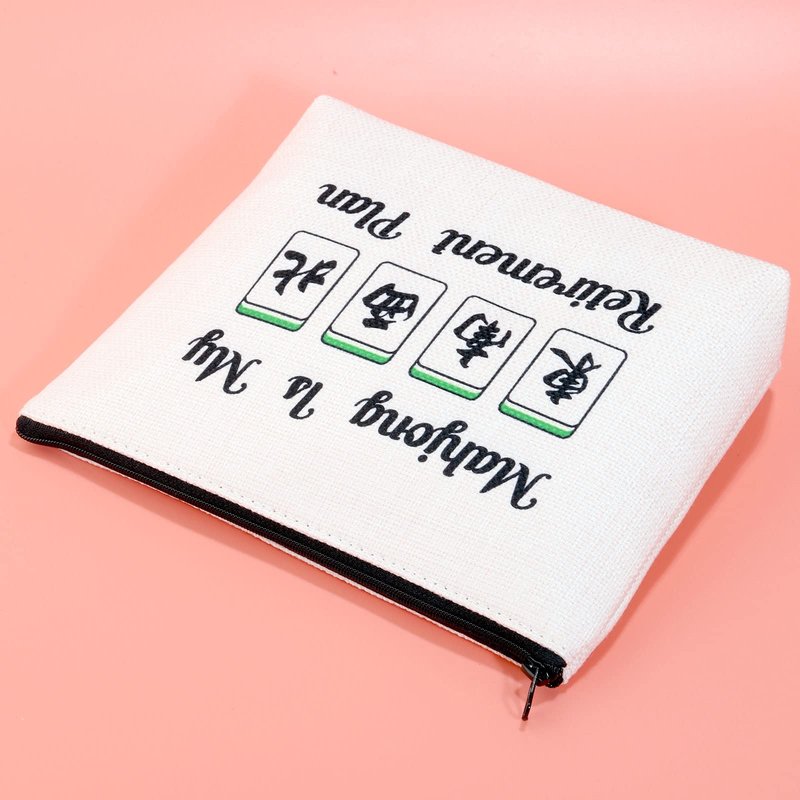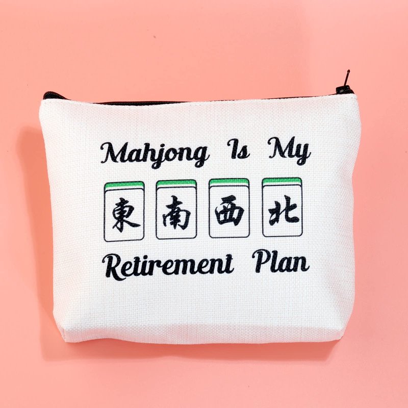 JXGZSO Novelty Mahjong Cosmetic Bag Mahjong Lover Gift Mahjong is My Retirement Plan Board Game Zipper Purse Gift Lucky Mahjong Player