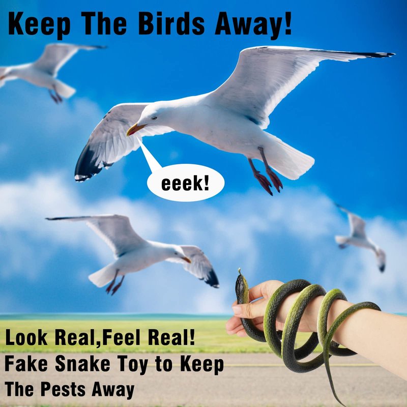 - Material: The rubber snakes to scare birds is made of safe, non-toxic and environmentally friendly rubber. Sturdy, durable, reusable and chemical free.