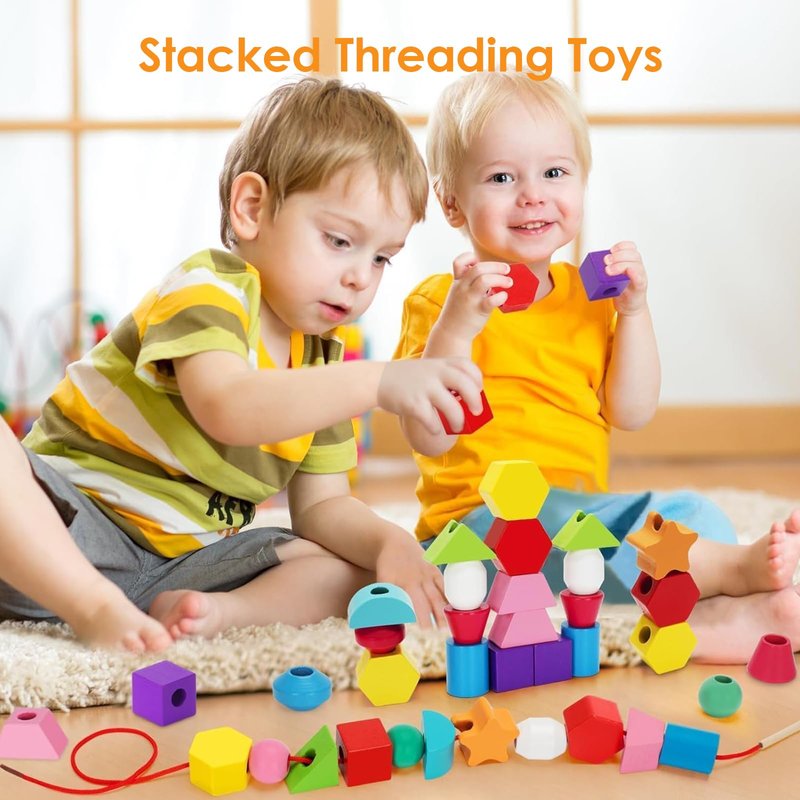 - 3-IN-1 MULTI-FUNCTIONAL MONTESSORI TOY - This toy comes loaded with 25 colorful wooden beads in various shapes, 1 wooden stand, 2 shoestrings with wooden sticks, 12 wooden fish, 1 wooden fishing pole, and 8 double-sided pattern cards. It ingeniously combines threading, stacking, and fishing game modes, offering kids an unprecedented gaming experience. This creative playstyle sparks children's imagination and creativity, filling their childhood with joy