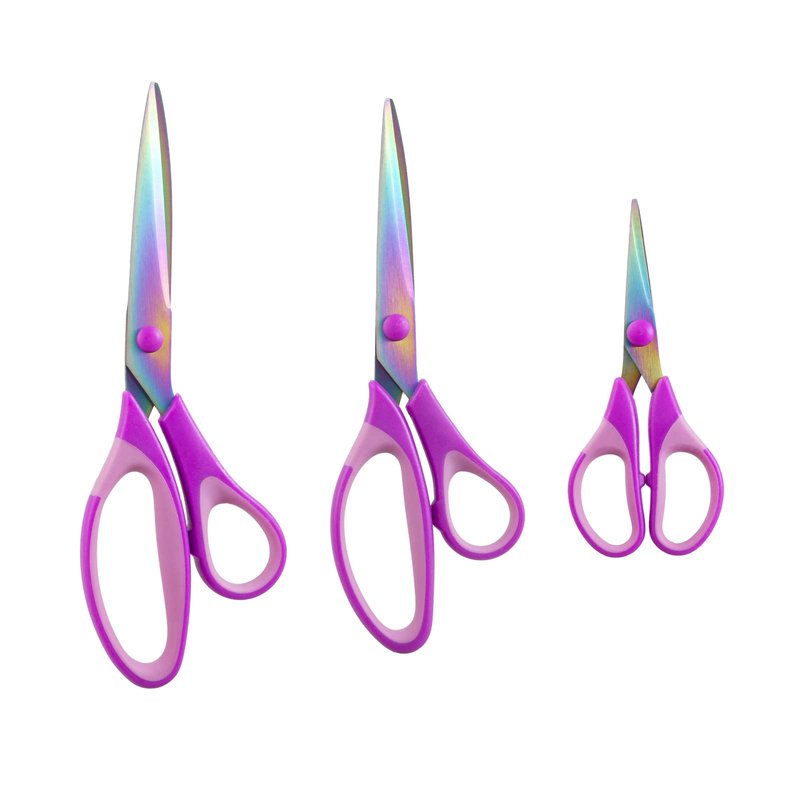 - 【Includes 3 Sizes】 You will get 3pcs titanium crafts scissors. Includes 9.4 inch dressmaking scissors, 8.5 inch craft scissors and 5.6 inch embroidery scissors.