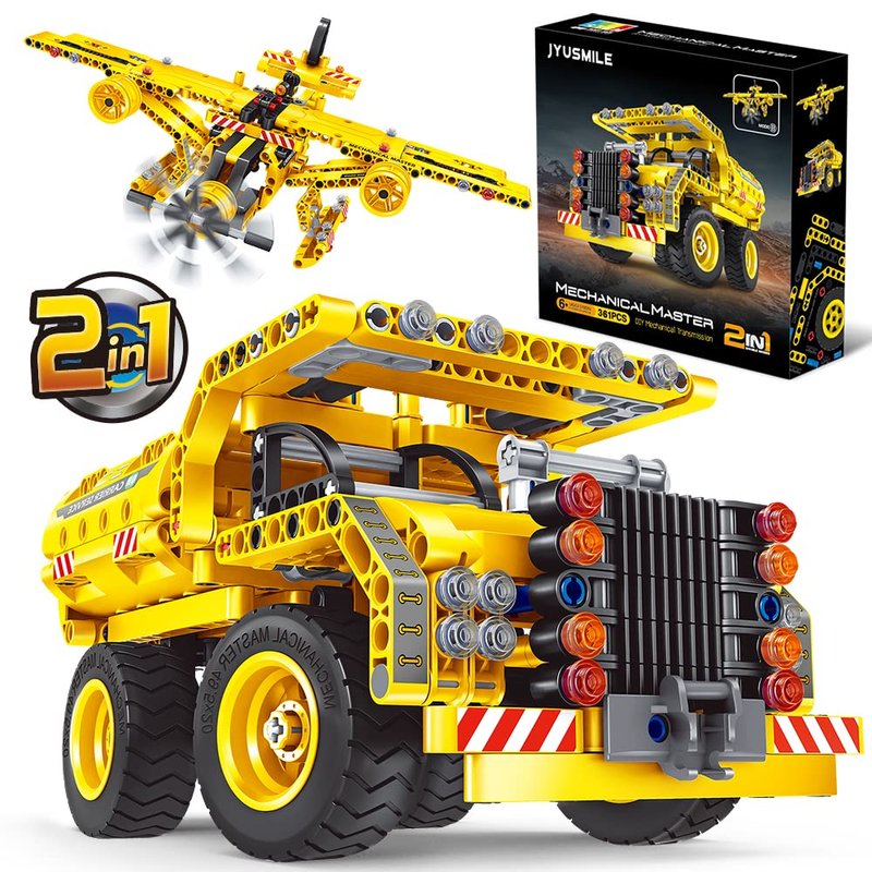 Jyusmile STEM Toy Building Toy for Age 6, 7, 8, 9, 10, 11, 12 Years Old Kids Boys Girls - 2-in-1 Truck Airplane Take Apart Toy, 361 Pcs DIY Building Blocks Kits, Engineering Construction Toy