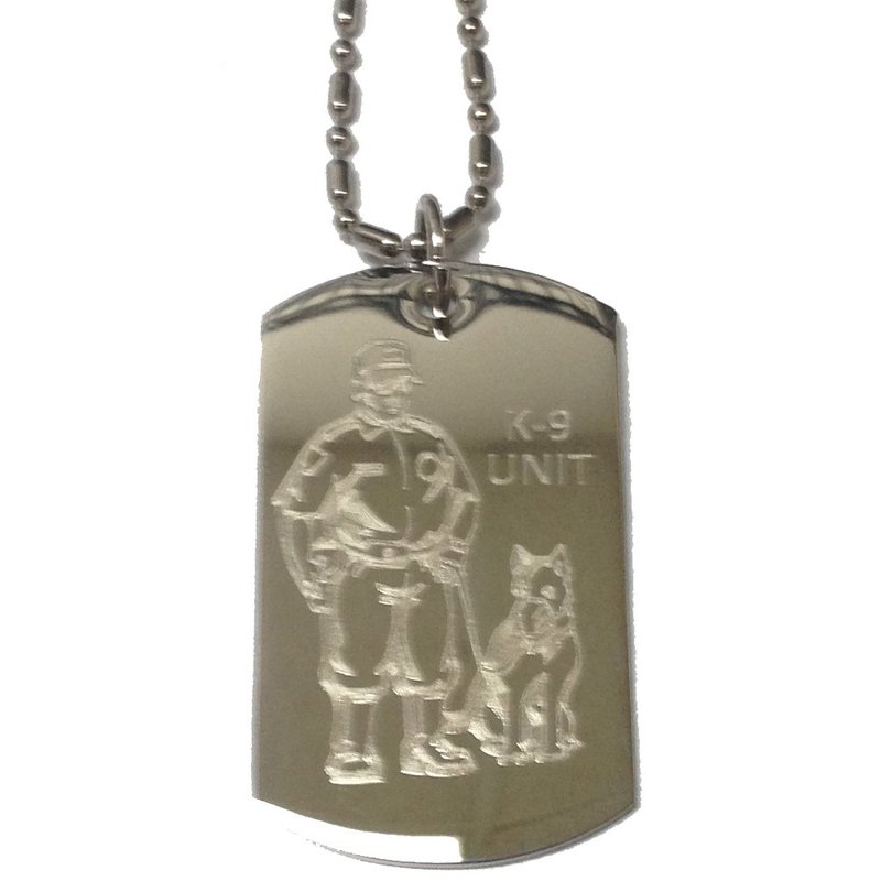 K-9 Unit Police Officer and Dog - Military Dog Tag, Luggage Tag Metal Chain Necklace