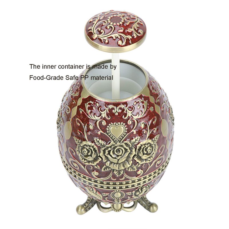 - Material: Made of eco-friendly Zinc Alloy for the appearance , the inner container is made by Food-Grade Safe PP material, safe and non-toxic, hand stamped gorgeous 3D embossment flower and heart Pattern, approx can hold up to 40pcs toothpicks.