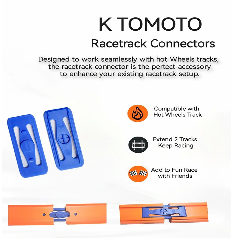 K TOMOTO Racetrack Connectors Set of 25, Compatible with Hotwheels Track | Straight Track Race Track Connectors Replacements(Blue)