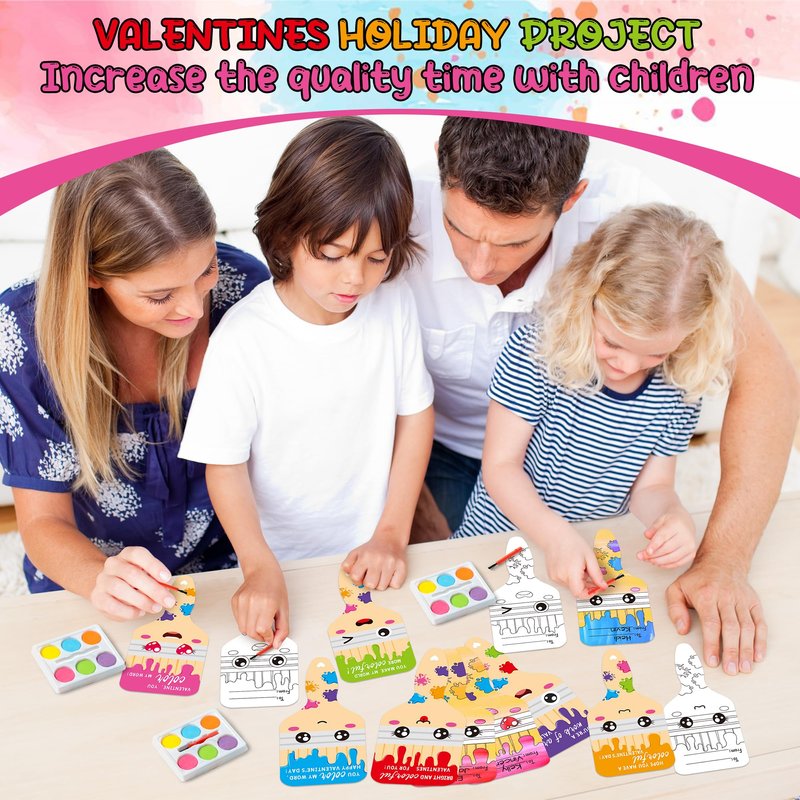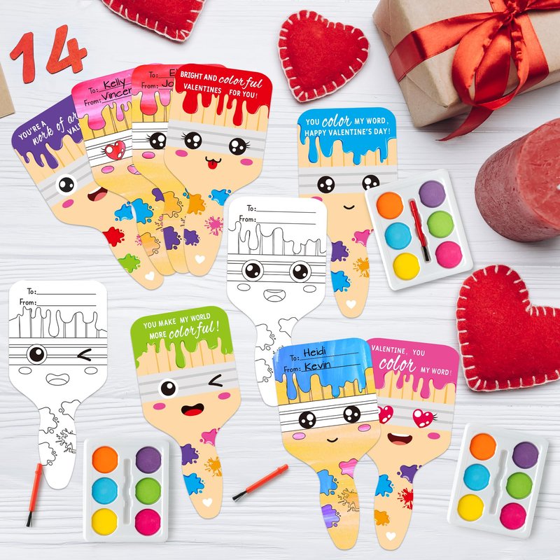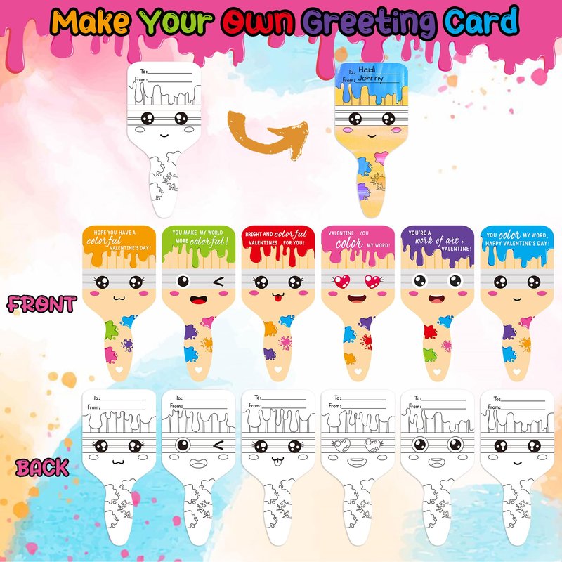 - Valentines Greeting Cards with a Twist: Elevate your Valentine's Day exchanges with a unique twist. Each set includes Valentines greeting cards featuring a DIY mini paint set, providing a fun and interactive way for boys and girls to celebrate the day.