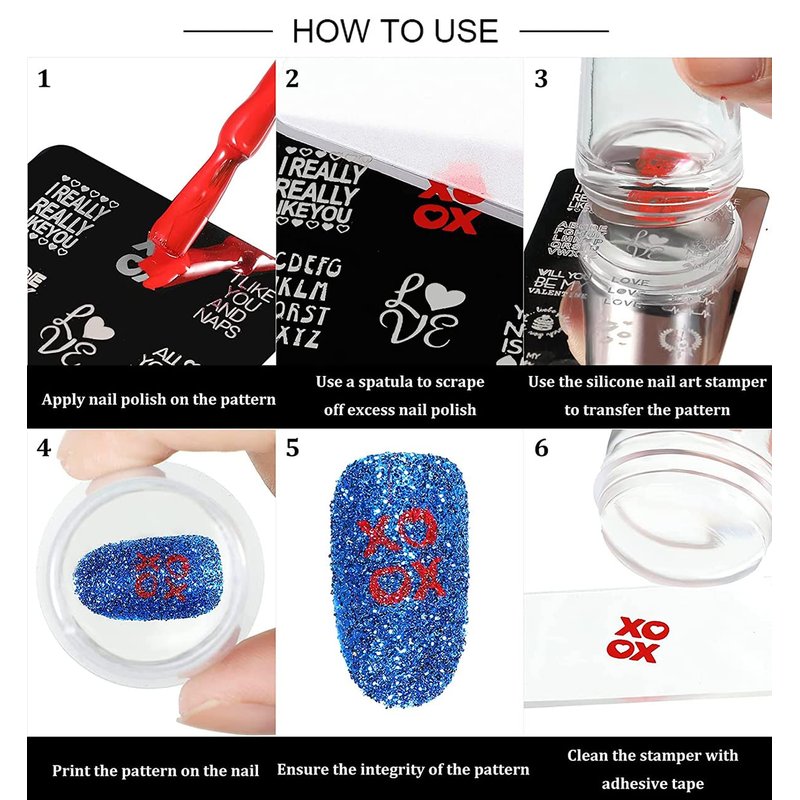 - Easy to Use: you peel off blue protect film before using, transfer image with the reusable nail plates by clear jelly, and stamp on your nails by the stamper. The trick is to make the movement fast to stamp the figure on the plate, with practice you can totally make it work well.