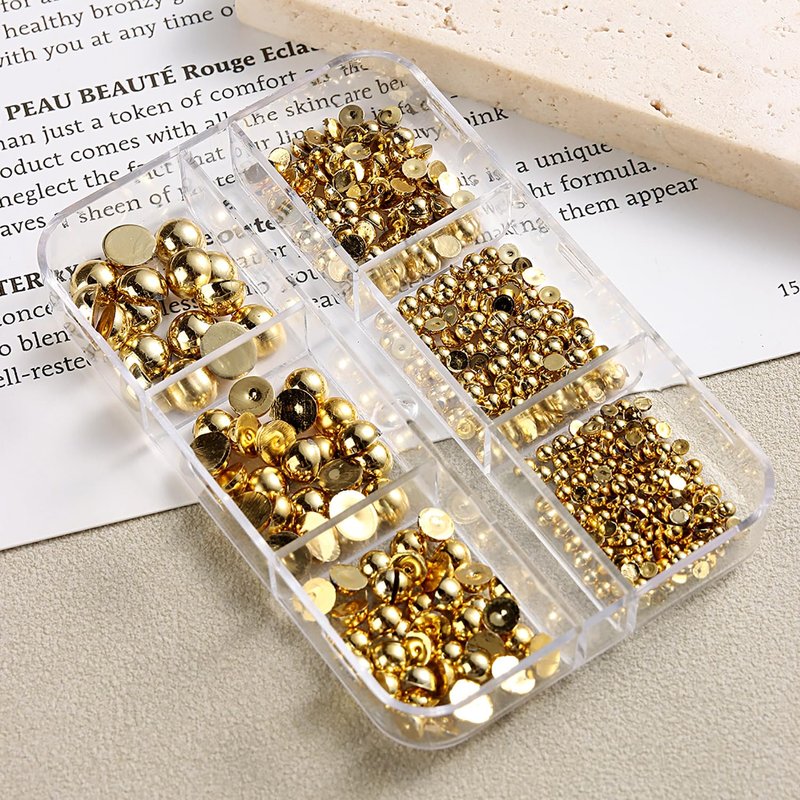 - 【Valuable Package】: You will get 2 Boxes/12 Grids half round pearls for nails, all pearls are beautifully packaged in a transparent box, pearls of different colors and sizes are packed into 6 separate small cells in the box and each cell has its own lid for quick access to the pearls you need.