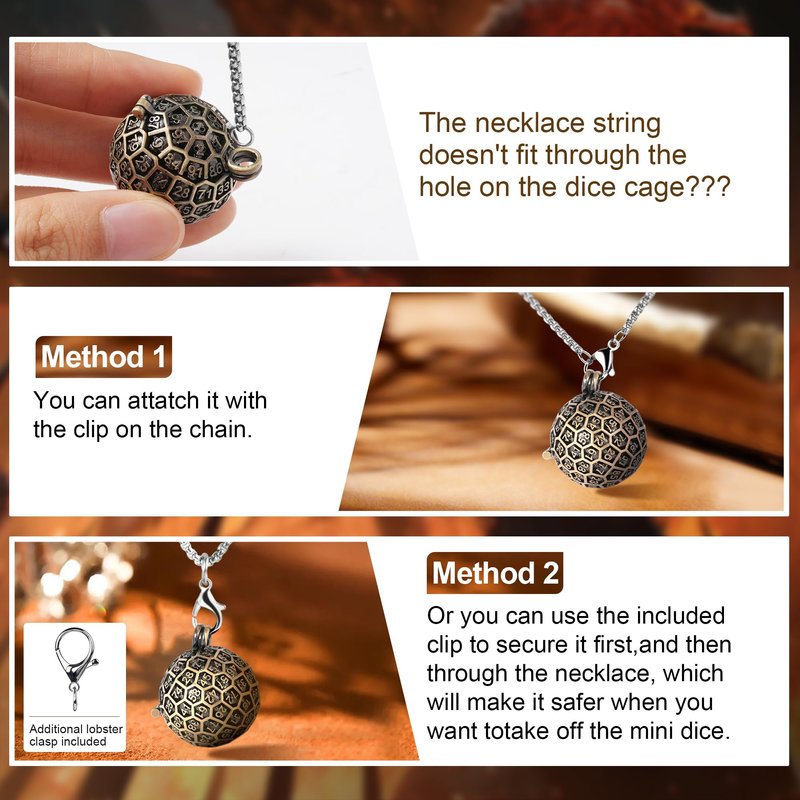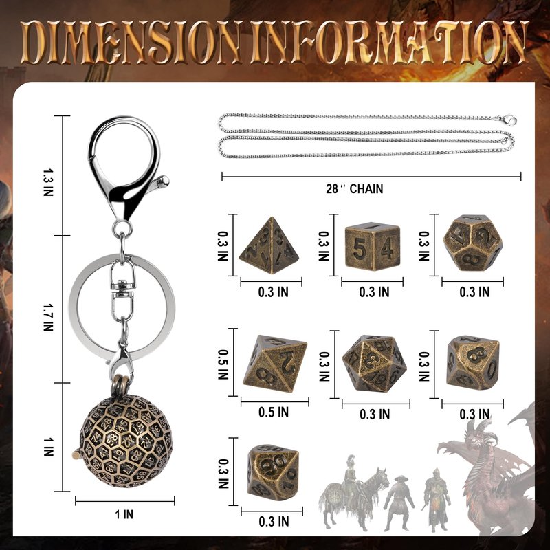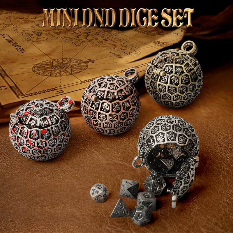 - Durable Metal Dice Set: The mini dices are made with solid zinc alloy for use of years; Hollow d100 cage is made of copper; Necklace and keychain are made with stainless steel; They will not fade or rust, and can be used for a longer time