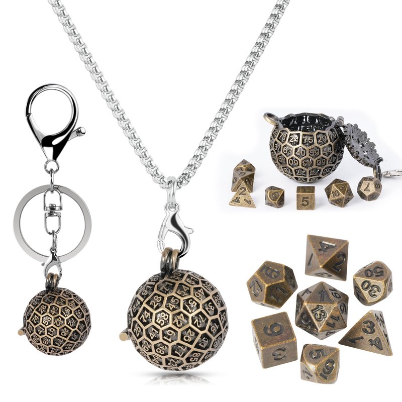 - INCLUSION: Each dnd dice set comes with a hollow D100 dice, a necklace, a keychain and 7pcs copper tiny dices; DND fans can hang them around their necks or behind their backpacks, carry their favourite d&d dice wherever they go