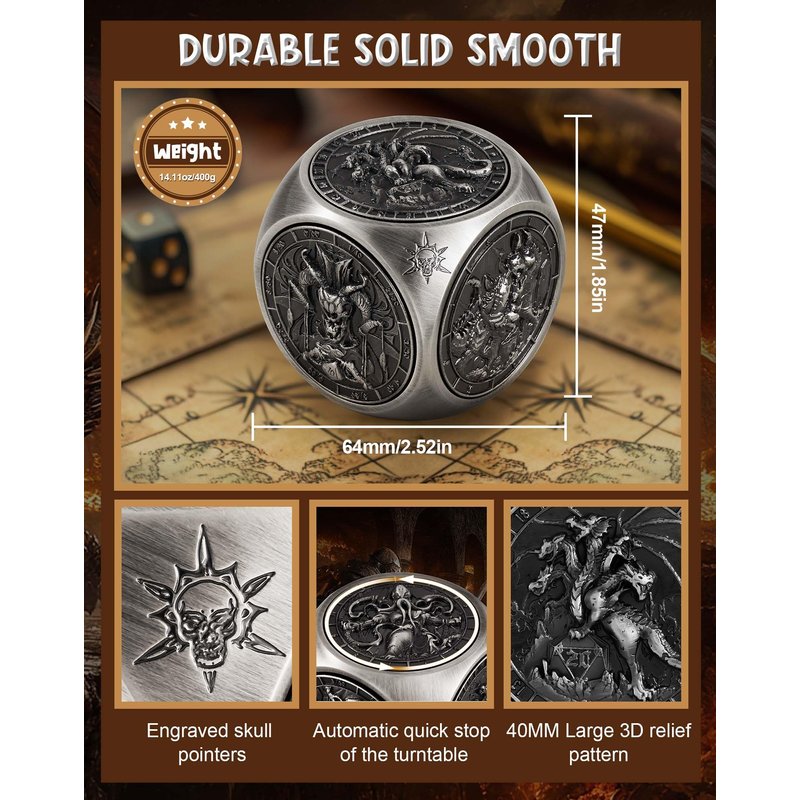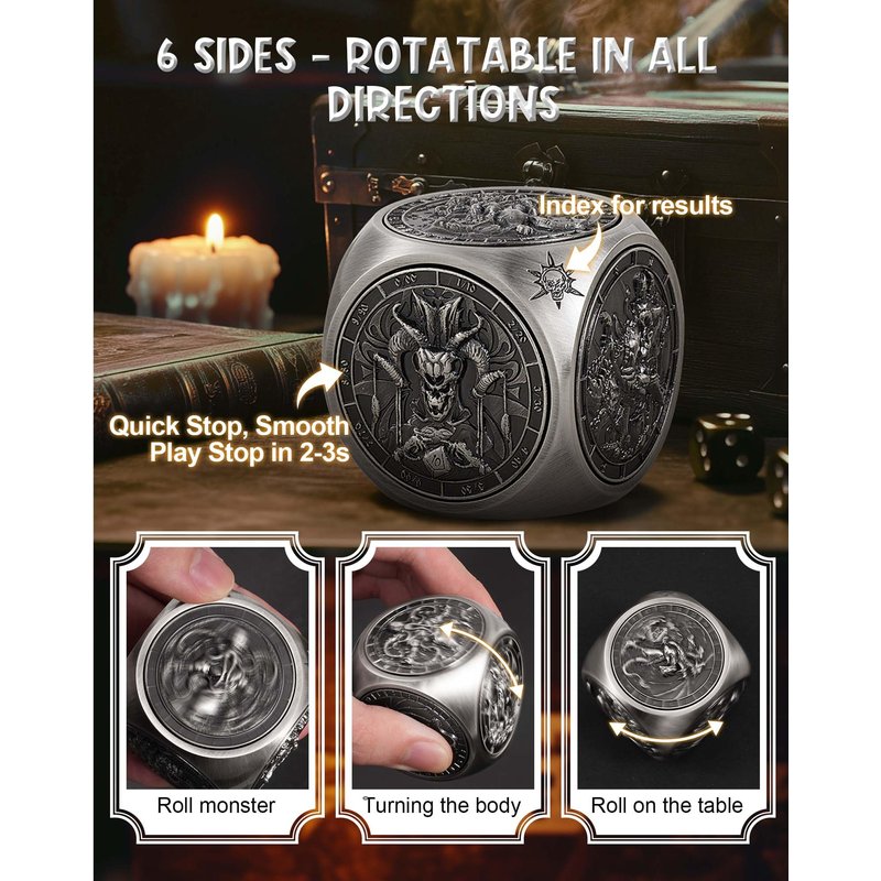 • Fair & Fast: This ingenious rotating metal DND dice subverts the conventional experience of traditional dice games. By precisely adjusting the rotation rate of each side, it realizes the unprecedented fast and automatic determination of the result, completely bidding farewell to the trouble of long waiting, and letting every throw be full of instant surprises and fun