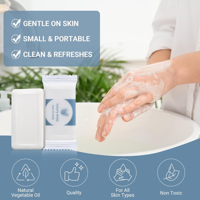 Kacctyen 100 Pcs 0.35oz Mini Bar Soap Bulk Individually Wrapped Bulk Hand Hotel Soap Bars Travel Size Toiletries for Vacation Hospitality Guest Bathroom Rentals