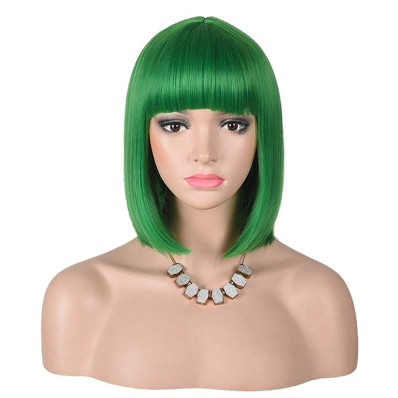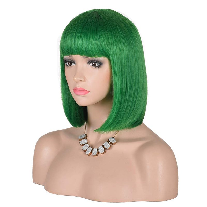 • Color:Green, Short Straight Black Bob Wig with Bangs for Women Wear Looks Natural.