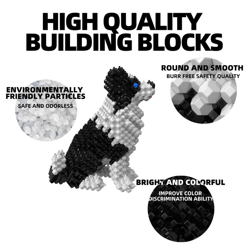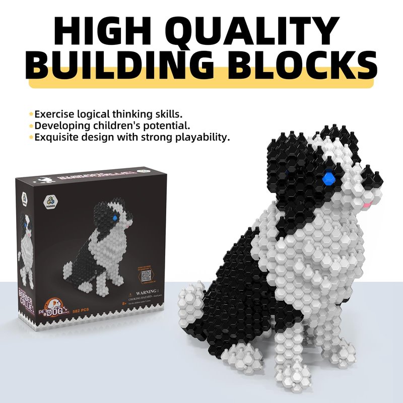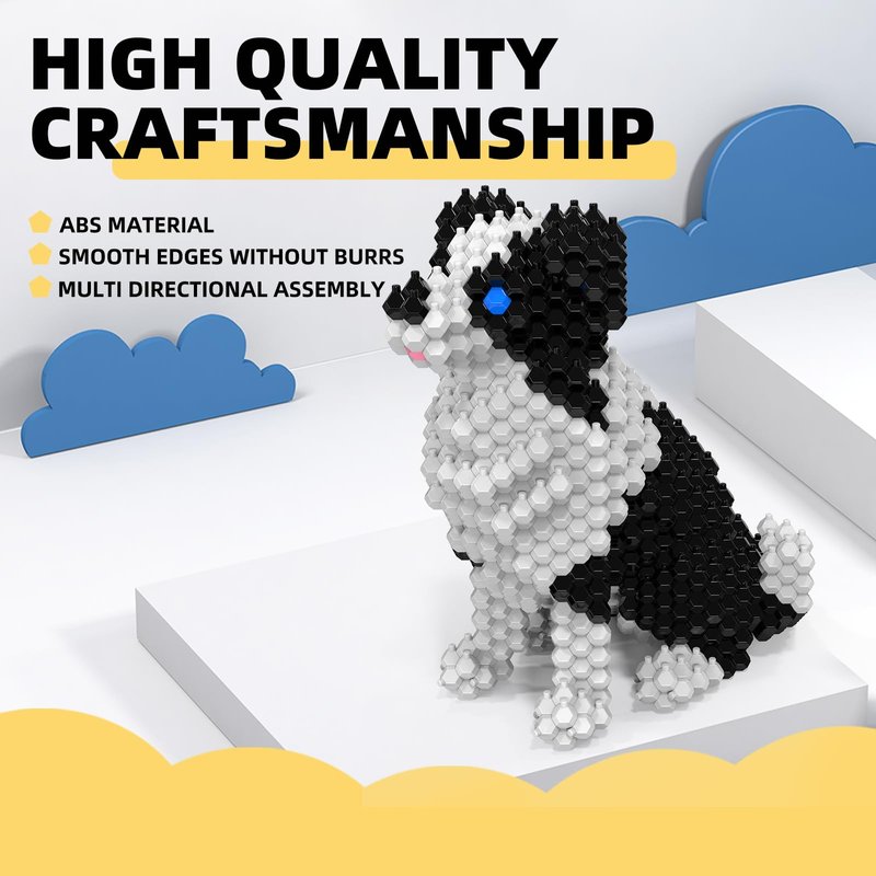 - 【A New Fun Building & Educational Toy】: Our Cute Border Collie building set consists of 582 pcs Polyhedral Spherical blocks which made of safe & environmental friendly ABS plastic. Micro 3D building aim to improve kid's Hands-on skills and Spatial Observation. Kids will learn so much about dogs and their anatomy just by building this model.