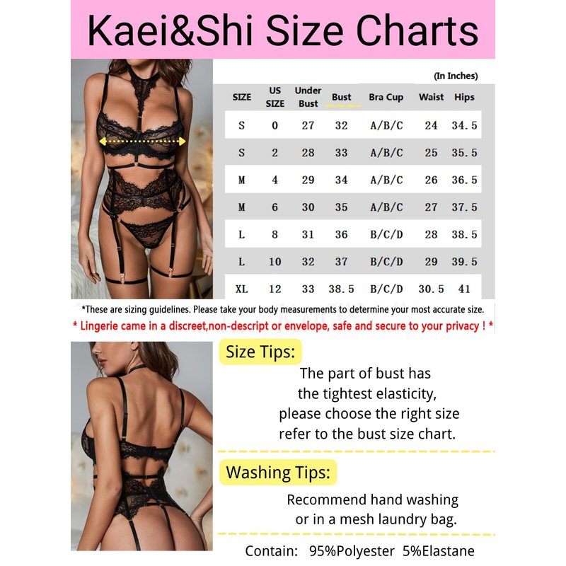 - ✿Fabric: Kaei&Shi 4 piece lingerie is made of high quality lace fabric, lightweight and breathable material will make you comfortable to wear.