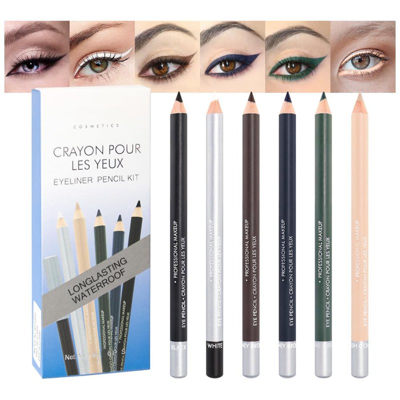 Kaely 6 Colors Pencil Eyeliner Set,Smooth Eye Liner Waterproof Smudge Proof,Sharpenable Multi-Use Gel Eyeliner Pencil Pen,Creates Natural Eye Makeup,delineador de ojos contra el agua
