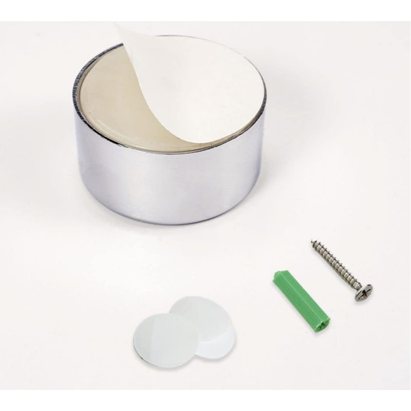 - Two 1 pack.round adhesive grey push towel hooks measuring 1.65 inches in diameter by 0.87 inch in height.