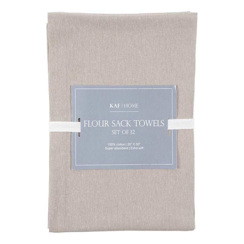 KAF Home Set of 12 Flat Flour Sack Embroidery/Craft Gray Kitchen Towels, 100-Percent Cotton, Lightweight, Thin, Absorbent, Extra Soft (20 x 30-Inches) (Gray)