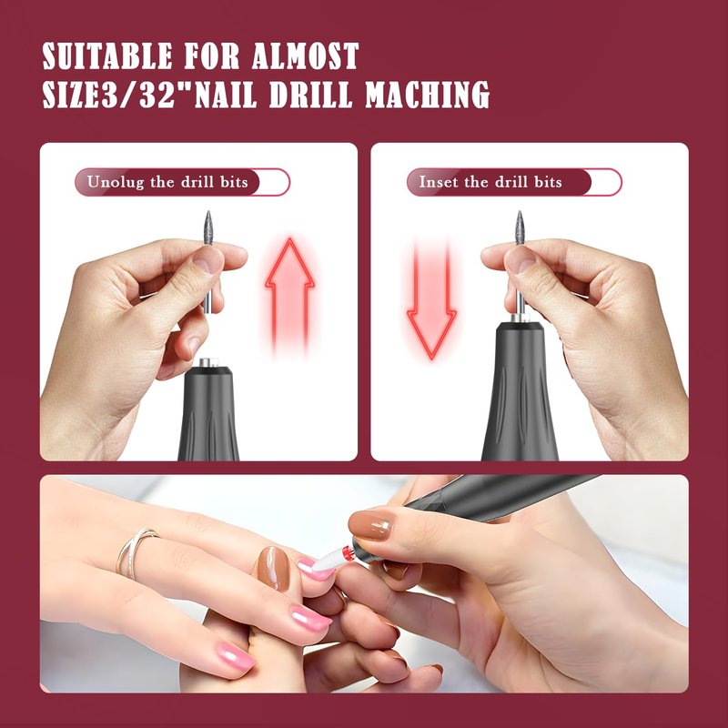 - 5. Universal 3/32-inch nail drill bits fit most electric or rechargeable manicure nail file machine. Perfect for nail salon, beauty parlor, personal manicure pedicure, DIY nail art at home.