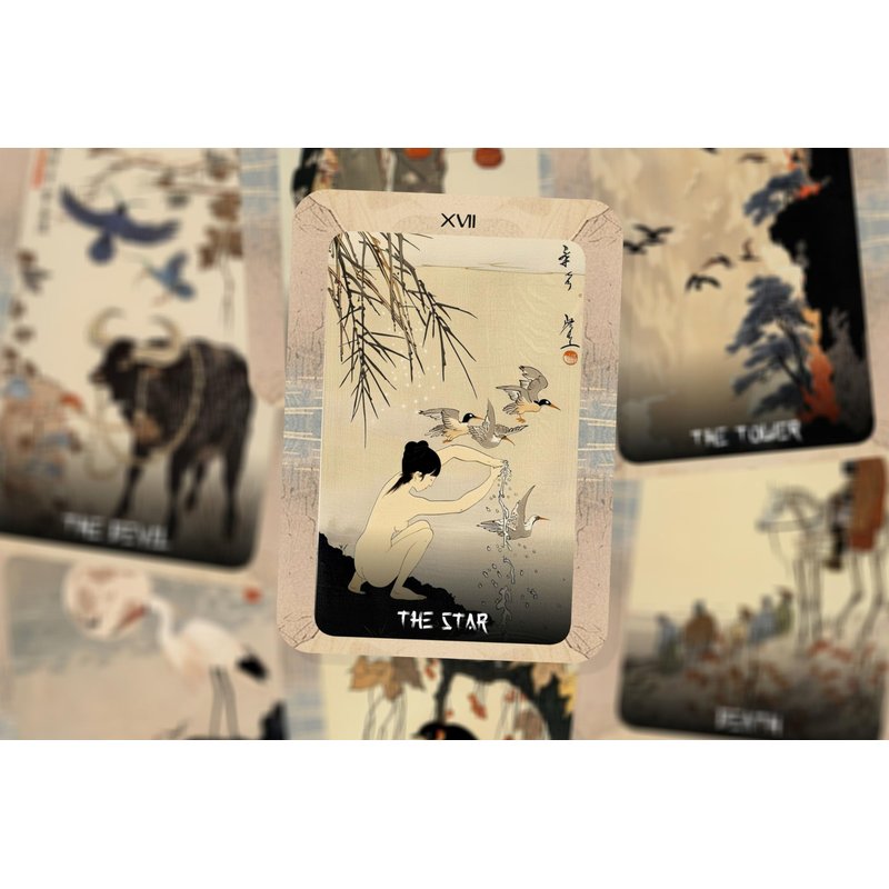 The artwork captures a radiant and ethereal quality, inspired by Koson's prints, bringing tranquility and enlightenment to your tarot practice.