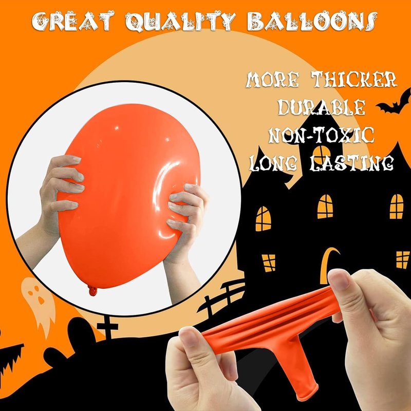 • 🎃 HIGH-QUALITY BALLOONS: Halloween decorations, black purple orange green balloons, made of natural high-quality latex, odorless non-toxic, and harmless, which are safe, strong, and durable; support helium or air, you do not have to worry about tearing or bursting after inflation, suitable for enjoying happy DIY balloon time with friends or family