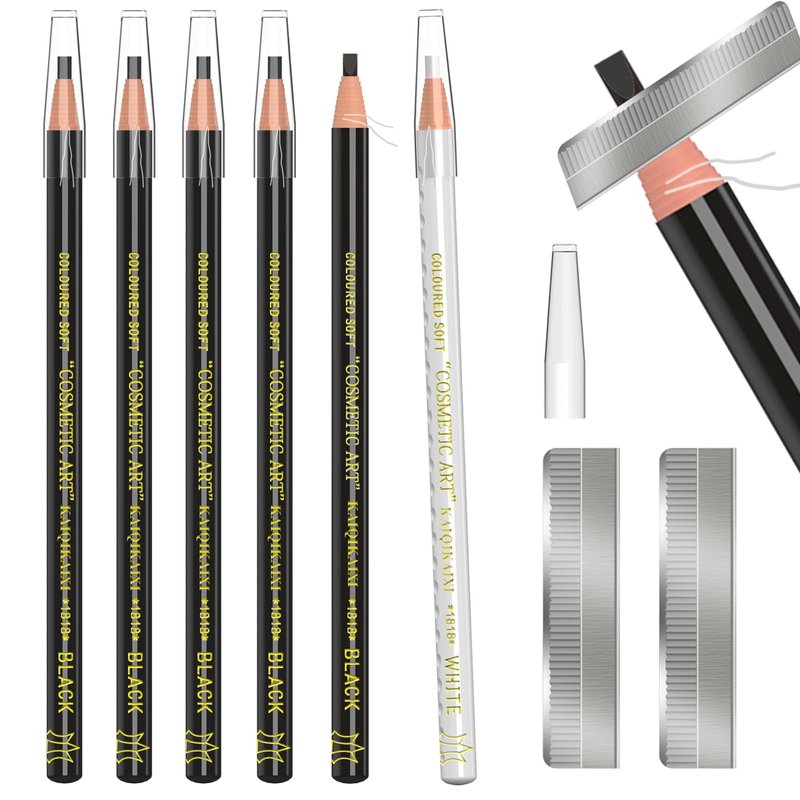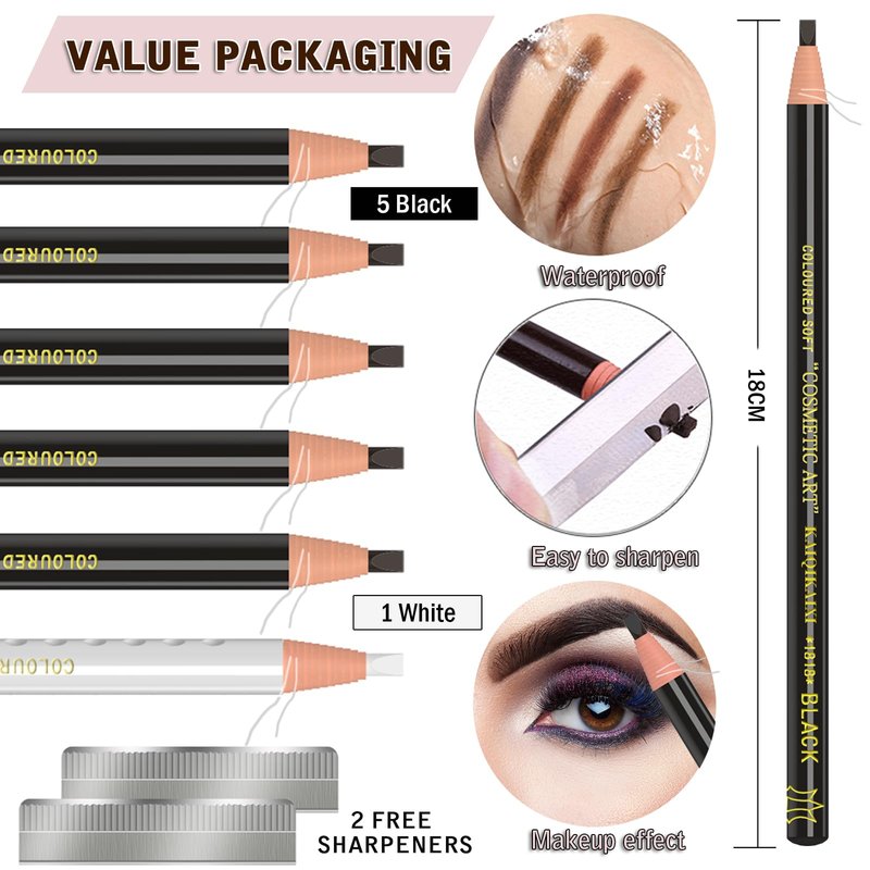 KAIQIKAIXI 6Pcs Black Waterproof Eyebrow Pencils Makeup Set For Marking, Filling And Outlining, Tattoo Makeup And Microblading Supplies Kit-Hard Refills Are Easy To Color (Black)