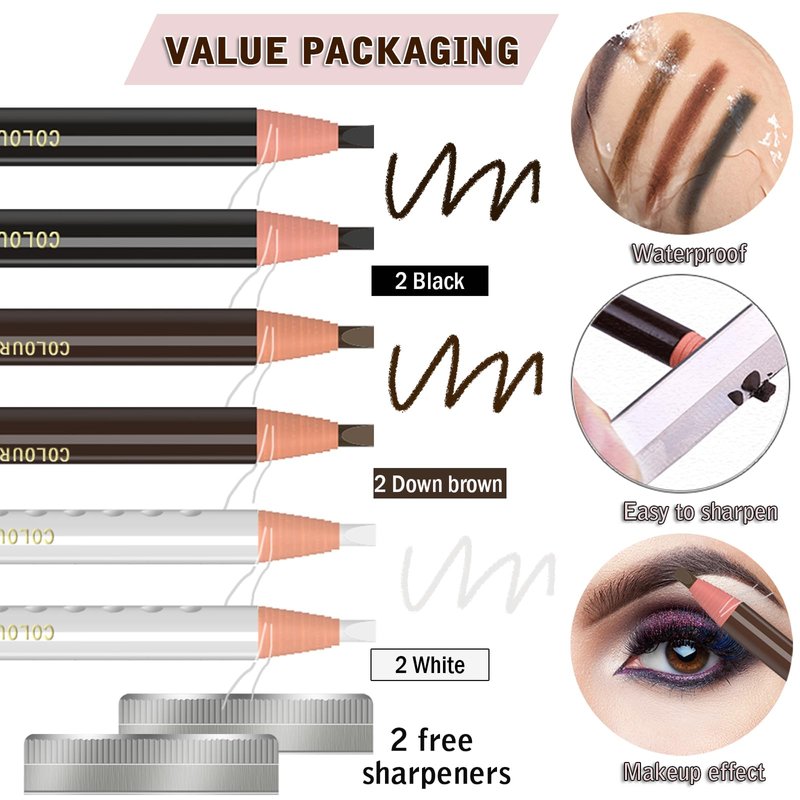 KAIQIKAIXI 6Pcs Multicolor Waterproof Eyebrow Pencils Makeup Set For Marking, Filling And Outlining, Tattoo Makeup And Microblading Supplies Kit-Hard Refills Are Easy To Color (Multicolor)