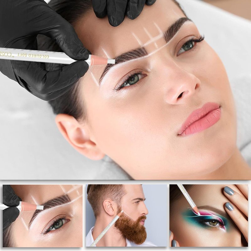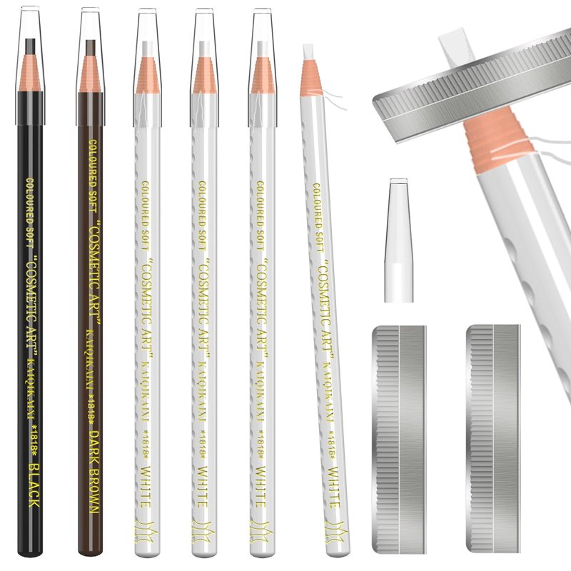 KAIQIKAIXI 6Pcs White Waterproof Eyebrow Pencils Makeup Set For Marking, Filling And Outlining, Tattoo Makeup And Microblading Supplies Kit-Hard Refills Are Easy To Color (White)