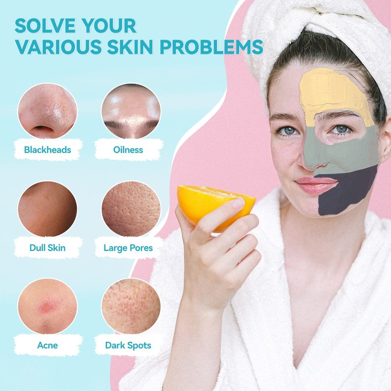 - 【Clay Face Mask Skincare】Cleansing is the key part of Skincare. Our 3 in 1 clay mask set focus on deep pore cleansing and restoring clean and moisturized skin, ideal for daily facial skincare and skin problem treatment. Infused with Turmeric,Dead Sea mud and green tea skin-loving natural ingredients, its soothing and hydrating properties boost skin elasticity and vitality, supercharge your glow