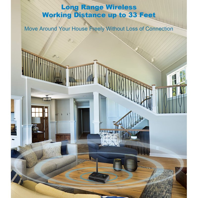 - LONG RANGE WIRELESS: The Bluetooth stereo receiver also gives you up to 33 feet of range, and stable transmission, so that you can move around your house freely without loss of connection. Worry-free 12-month.