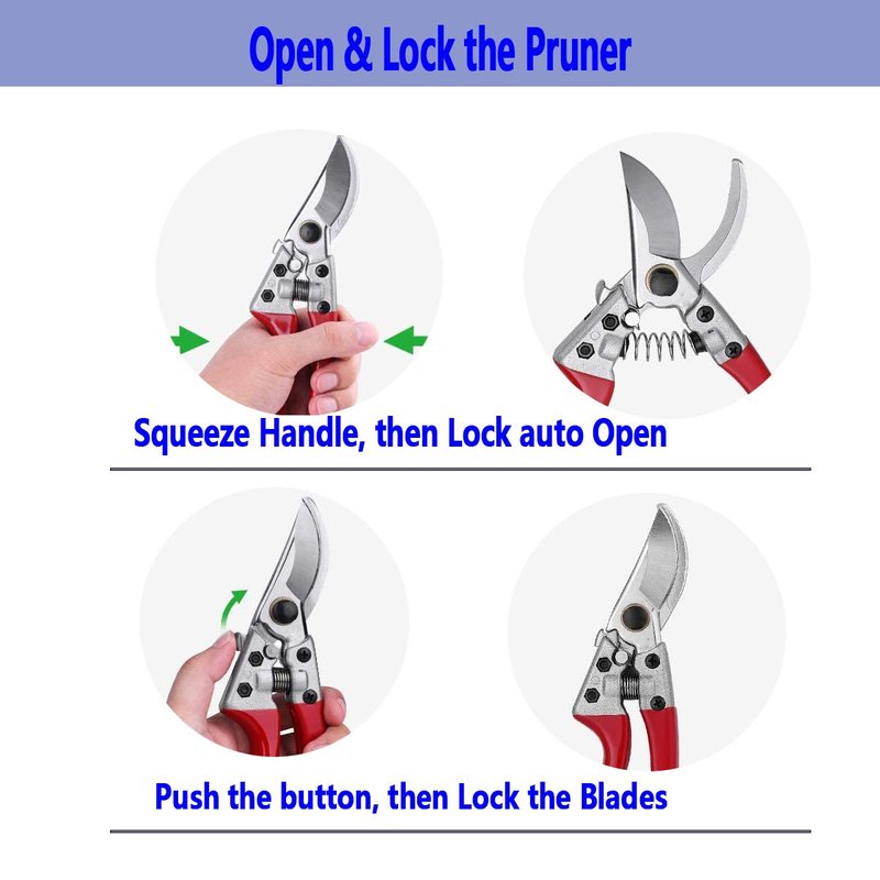 - 💠Safety Details - More safe with this hedge shears with one button, you can move the button to the right for the unlock of the Pruning Scissors, and move it to the left for the lock of Pruner Shears. Very easy to operate.
