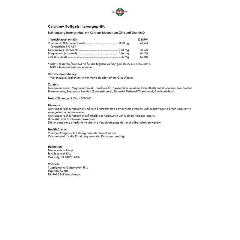 - Magnesium and Vitamin D are intended to work synergistically with Calcium