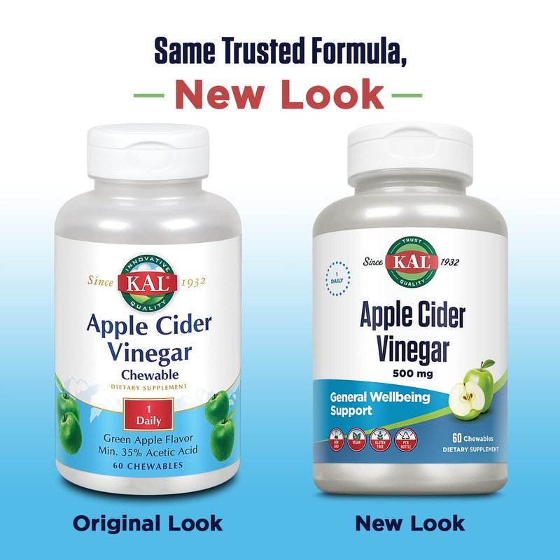 KAL Chewable Tablets, Apple Cider Vinegar, 500 mg, 60 Count