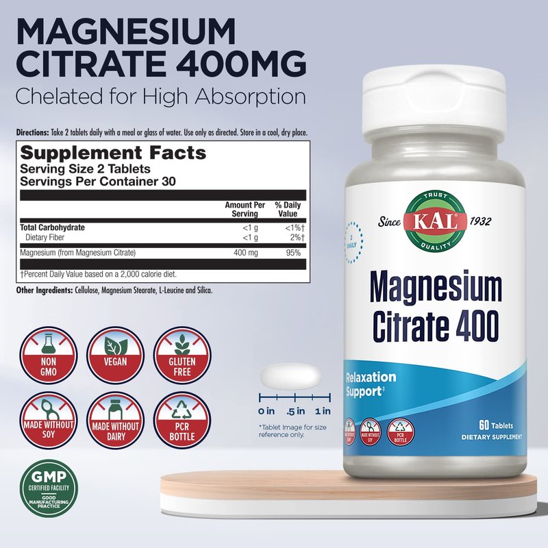 - Fast-Acting Support - KAL's ActivTab technology guarantees our magnesium citrate tablets disintegrate within 30 minutes, as per USP standards, and go to work quickly. Plus like all KAL products, they include a 60-day money back guarantee.