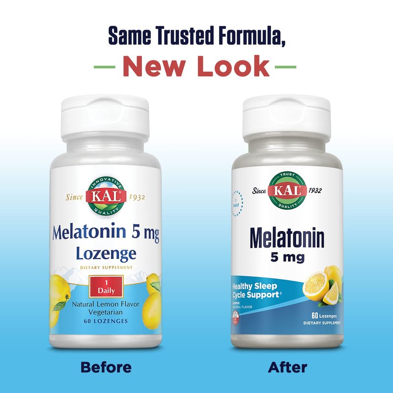 KAL Melatonin 5mg Sleep Aid Lozenges, Melatonin Supplement Supports Sleep Quality, Calming Relaxation and a Healthy Sleep Cycle, with Added Vitamin B6, Vegetarian, Natural Lemon Flavor, 60 Lozenges