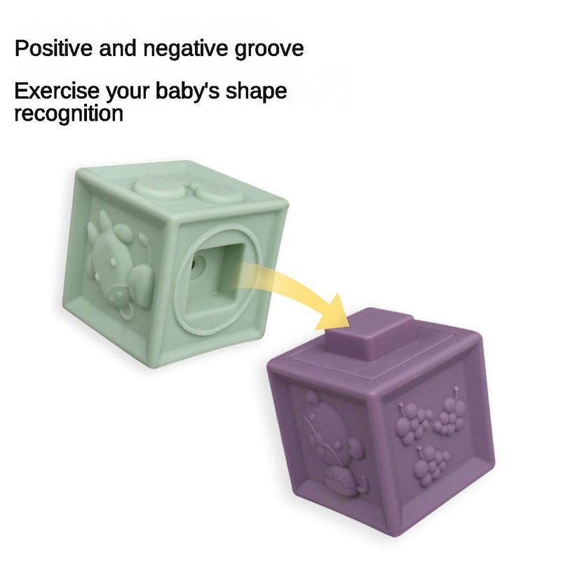 - 【Stacking Toys】: Cute 3D raised patterns with a variety of bright colors, babies can easily pick them up and stack them together by hand. In addition, they can be squeezed and will make a squeaking sound.