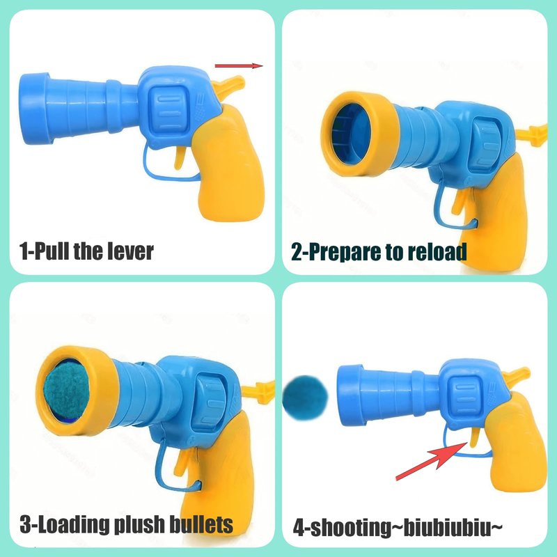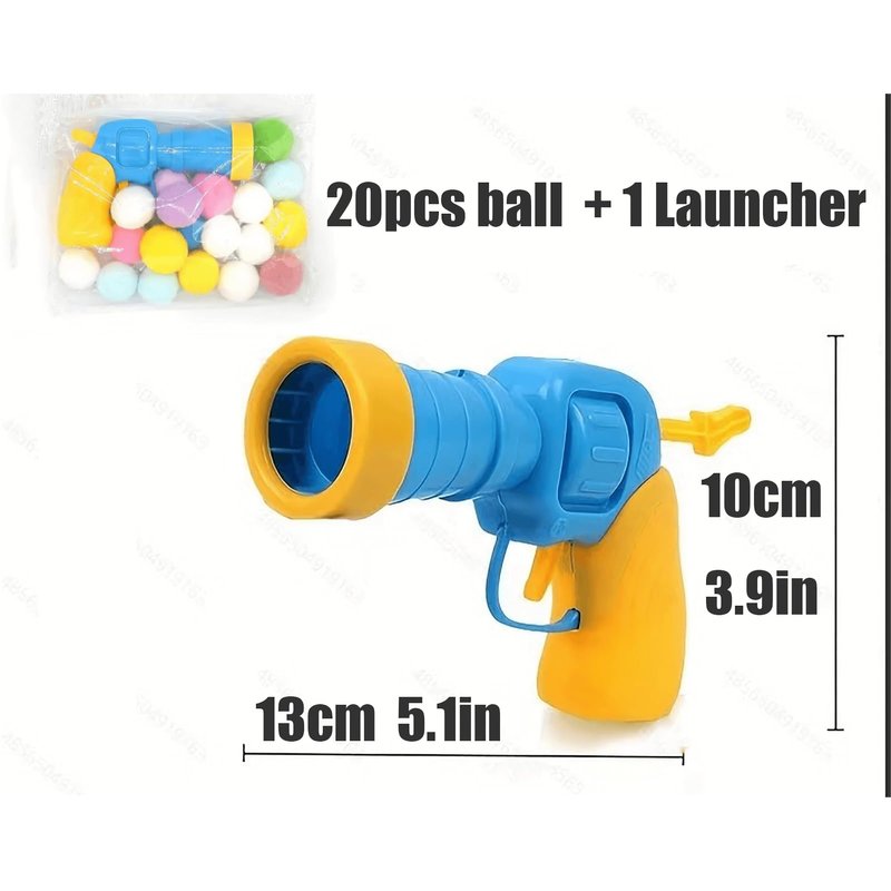 Cat toy set that includes guns and colorful pompom balls. Cats love playing with these soft balls, and the launcher adds excitement as you can propel the balls for them to chase. It strengthens the bond between you and your cat and is made of safe materials. The toy promotes physical fitness and mental agility. Suitable for both indoor and outdoor play.