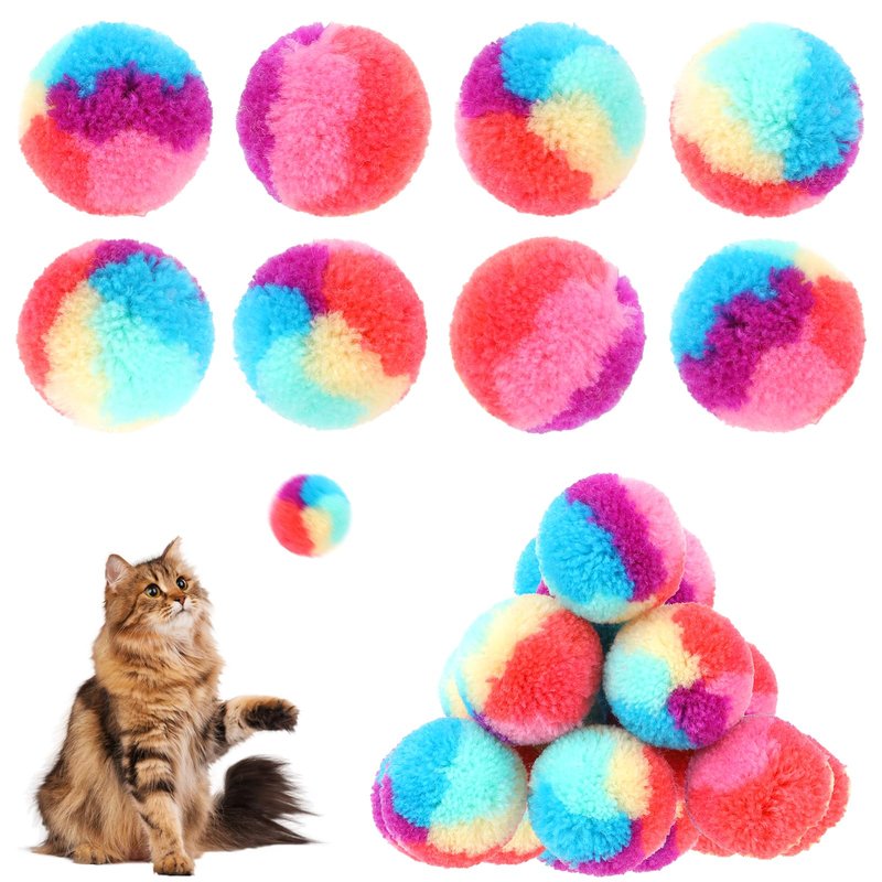 - 【Practical Design】The cat toy balls are in rainbow colors, the bright colors can easily attract the cat's attention, and these plush toy balls are silent, even if the cat plays at night, it will not disturb your rest