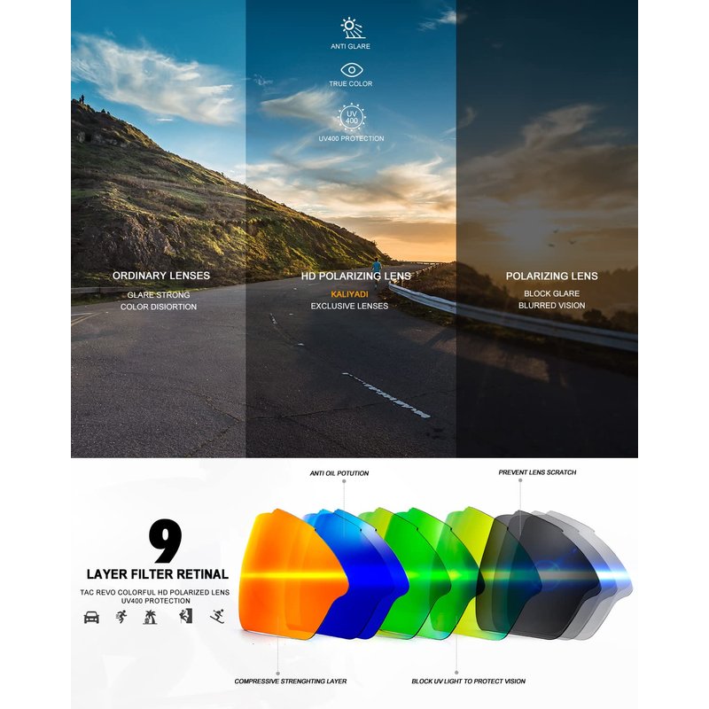 • 😎 Professionality and Longevity 📢 We understand that sports activities can be demanding, which is why these men's sunglasses are built to withstand the rigors of your active lifestyle. The lenses are crafted with scratch-resistant and impact-resistant materials, ensuring durability and longevity even in the most challenging conditions. With KALIYADI polarized sunglasses men fishing, you can enjoy your favorite sports with confidence.