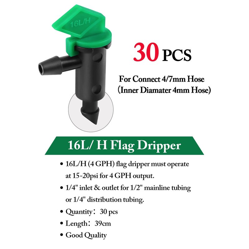 - Easy to Manage: the flag drippers fit for 1/2 inch trunk lines, also suitable for 1/4 inch branch lines. Different droppers work well in controlling the water flow of different soils, convenient for you to manage plants of different habits.