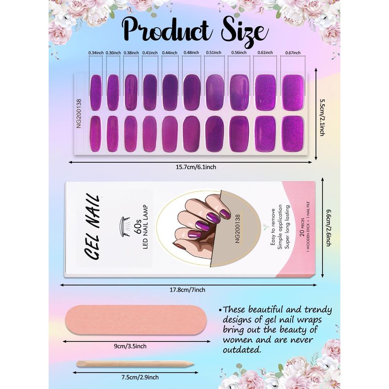 - 【Gel Nail Wrap】The package includes 20pcs purple mirror gel nail polish strip stickers with 1 nail file, 1 nail stick, which make your nail art decoration more convenient.