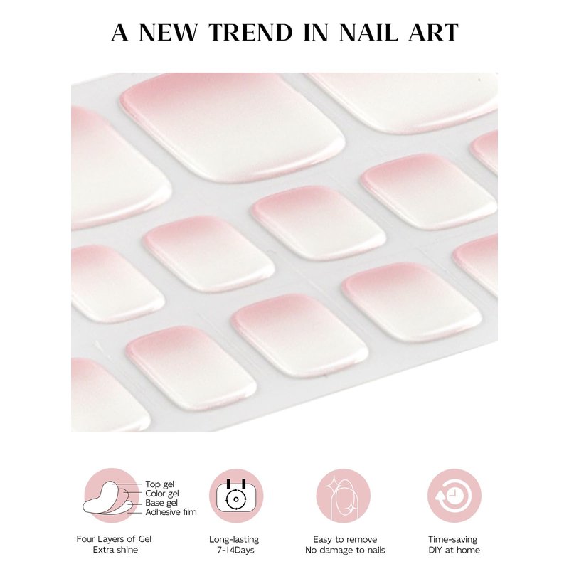 - Easy to Use: The gel toenail wrap stickers are easy to put on, file down, and cure by UV light. You can get salon-quality nail art in just a few minutes. Removal is also quite easy, peel them off with a wooden stick or fingers.